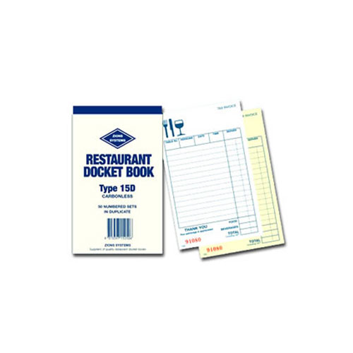 Zions Restaurant Docket Book Duplicate CarbonLess 25 Pack Adelaide Direct Stationers